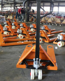 手動(dòng)液壓搬運(yùn)車有手柄、油缸、車體三大組成部分,手柄主要是來(lái)控制貨叉的起升與下降功能的,液壓油缸是用來(lái)輔助貨叉進(jìn)行起升和下降操作的動(dòng)力系統(tǒng),車體由貨叉和腳輪組成,是為貨物提供載體的重要零部件,客戶可以根據(jù)操作地面的類型來(lái)選擇購(gòu)買聚氨酯型車輪還是尼龍輪型車輪。