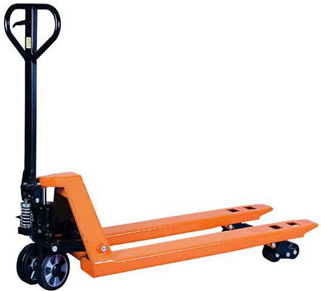手動液壓搬運車是行駛在地面上的小型運輸工具,它通常需要搭配托盤來共同使用,在貨叉上放上托盤和重物,按壓手柄,貨叉和重物隨之上升,拉動手柄,搬運車就會推動比自身重幾百倍的重物向前行駛。