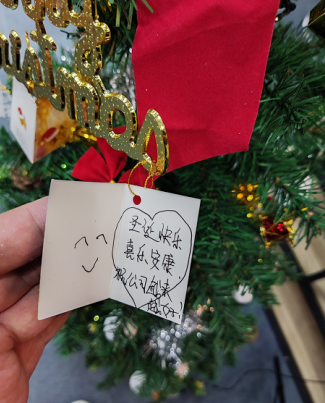 隨后兩名同事穿上圣誕老人的衣服整裝齊發(fā),為公司的每位家人都送去了裝有芳香四溢的蘋果和衷心誠摯祝福的“蘋”安袋?!疤O”安袋中還放入了心愿卡,在心愿卡上寫上心愿,公司會通過隨機抽取的方式幫助一位同事實現(xiàn)心愿。